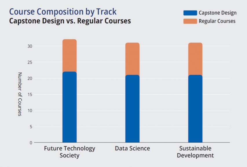 In practice, however, structural limitations restrict their learning experience. According to the program’s website, 22 of 32 courses in the Future Technology Society track and 21 of 31 courses in the Data Science and Sustainable Development tracks are “Capstone Design or Independent Study courses.” These project-oriented courses are not mandatory, but their high proportion limits the number of regular courses available. The result is that students can choose roughly 10 elective courses per year, less than half a semester’s worth. This restricts opportunities for genuine interdisciplinary exploration.