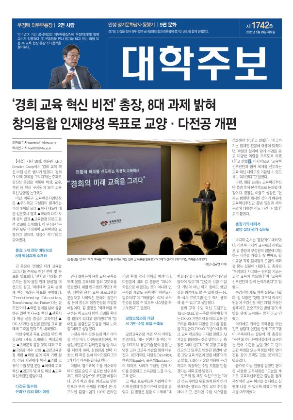 ‘경희 교육 혁신 비전’ 총장, 8대 과제 밝혀, 창의융합 인재양성 목표로 교양·다전공 개편