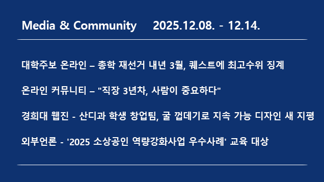 지난 9월 8일부터 14일까지 우리학교 관련 한 주간의 미디어·여론 동향을 살펴본다.