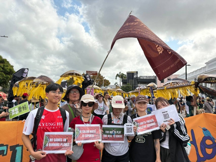 이들은 시민사회가 주도하는 기후 랠리에도 참여했다. 브라질 노총(CUT) 등 전 세계 활동가들과 함께 벨렝의 역사적 랜드마크를 행진했다. 행진은 벨렝 번화가인 상브라스 시장(Mercado de São Brás)에서 시작돼, 아마존 문화의 심장부라 불리는 ‘알데 이아 카바나(Aldeia Cabana)’ 광장까지 이어졌다. 우리학생들은 이 자리에서 ‘스포츠권을 보장하라’는 슬로건을 내걸고 행진했다.