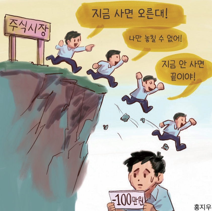 이러한 경험을 한 것은 비단 나뿐만이 아니다. 주변을 둘러보면 주식 투자를 하는 친구들을 어렵지 않게 찾아볼 수 있다. 그야말로 주식 열풍이다. 전문가들은 너도나도 주식 시장에 뛰어드는 현 상황을 ‘포모 FOMO(Fear Of Missing Out) 현상’으로 설명한다. 별도의 노동 없이 주식 투자로 남들이 큰 돈을 버는 것처럼 느껴지는 가운데, 나만 뒤처질 수 없다는 불안감이 청년들을 주식 시장으로 떠밀고 있다.