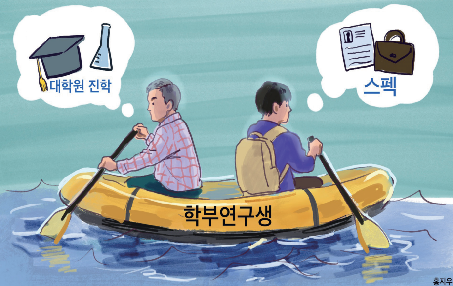 “고학년이 되면서 주변 동기들과 스펙을 쌓기 위해 어느 교수님의 학부연구생을 희망하는지 얘기를 자주 나눠요.” 이번 달부터 학부연구생 생활을 시작한 조영원(전자공학 2022) 씨는 ‘취업 경쟁력 확대를 위한 선택’이었다고 말했다. 최근 취업시장에 대한 불안감이 커지면서 이공계열 학생들 사이에서 실무경험을 쌓기 위한 학부연구생 선호 현상이 나타나고 있다. 학부연구생은 특정 교수의 지도를 받으며 연구실 인턴 형태로 연구를 보조하는 제도다.