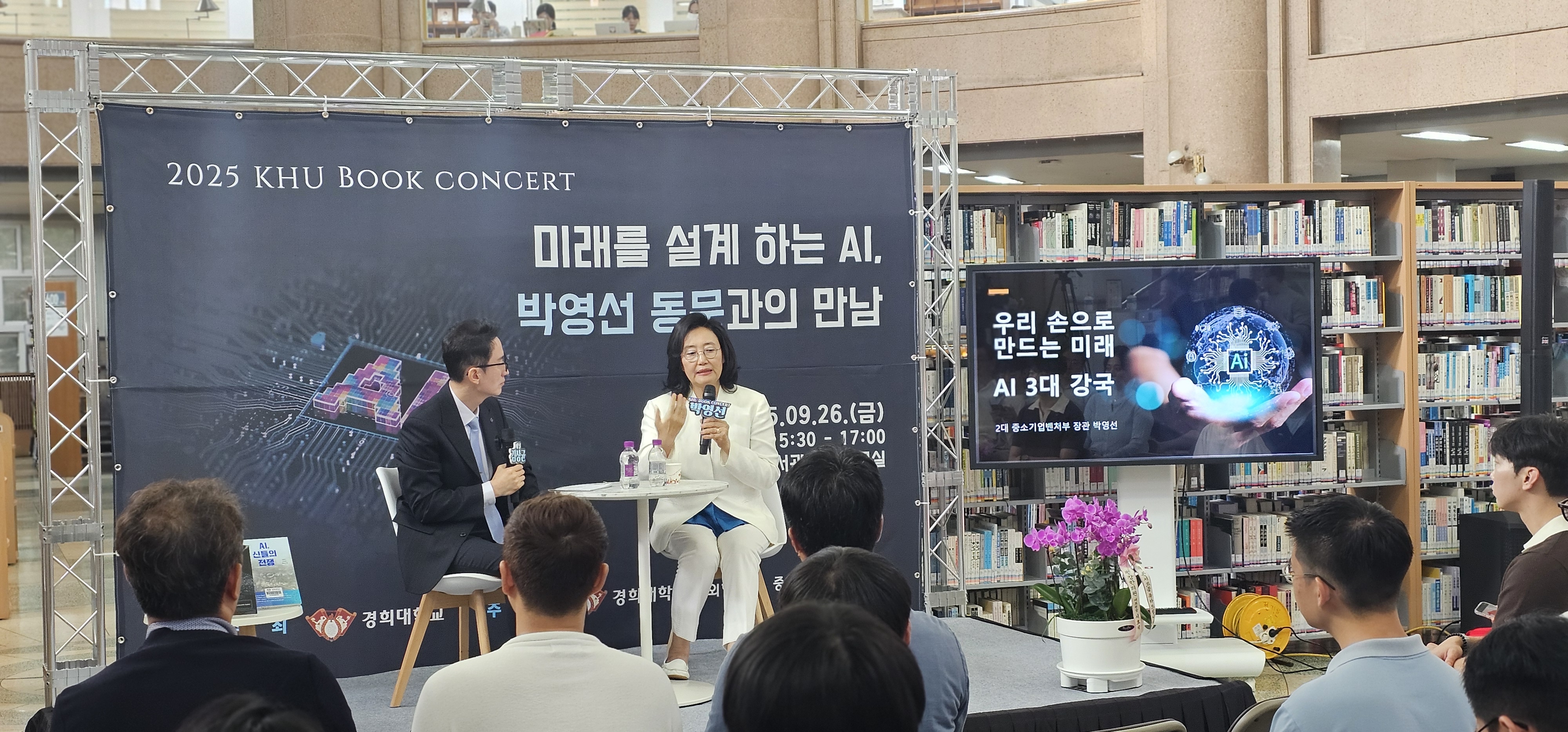 뉴스 중앙도서관서 북콘서트 ‘미래를 설계하는 AI, 박영선 동문과의 만남’ 열려한민 기자 2025-09-30 hit 882박영선(지리학 1979) 전 중소벤처기업부 장관의 북콘서트 ‘미래를 설계하는 AI, 박영선 동문과의 만남’이 지난 26...