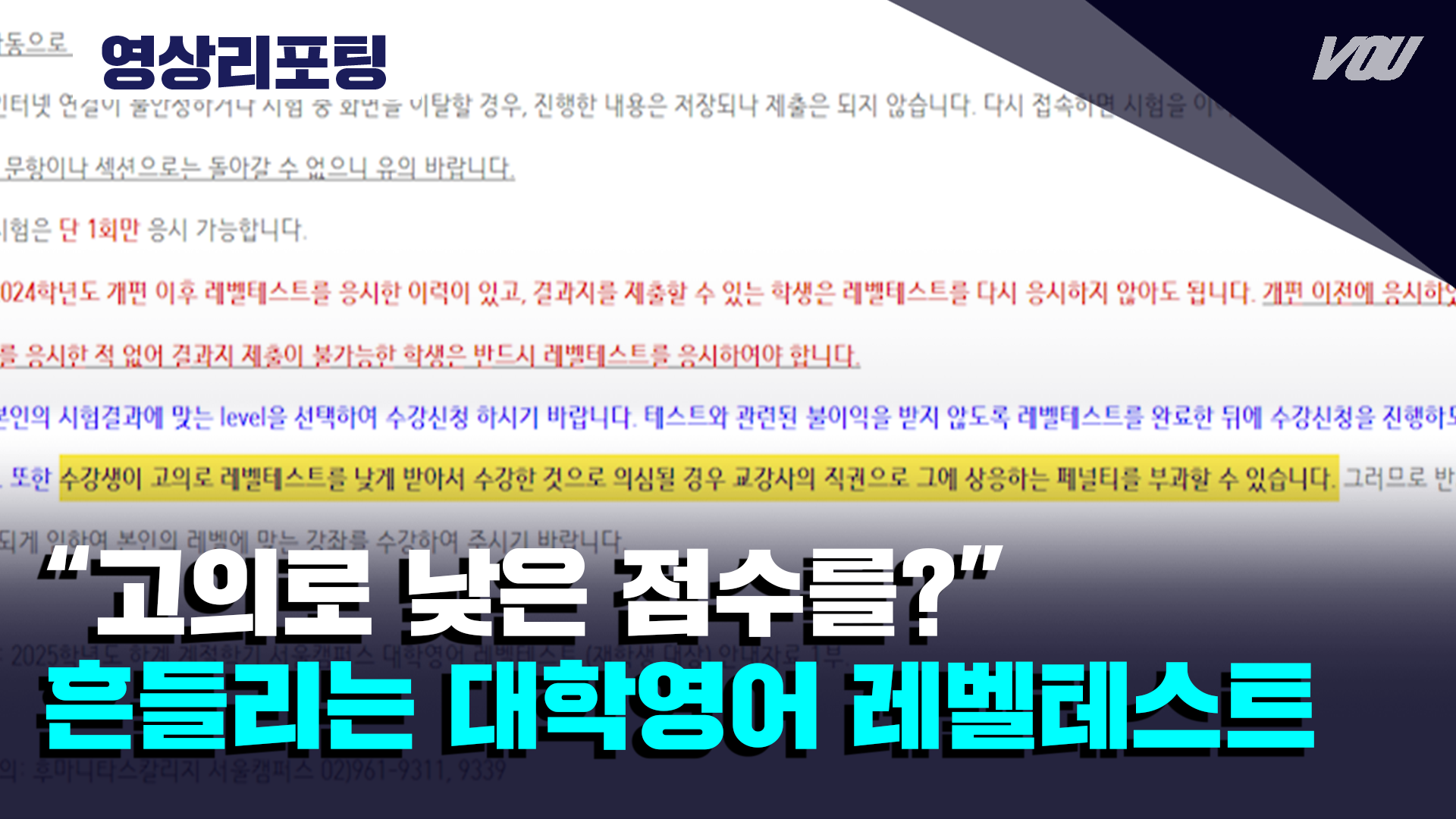 뉴스 [보도] - "고의로 낮은 점수를?" 흔들리는 대학영어 레벨테스트이민형, 차가현 기자 2025-09-21 hit 1221 -