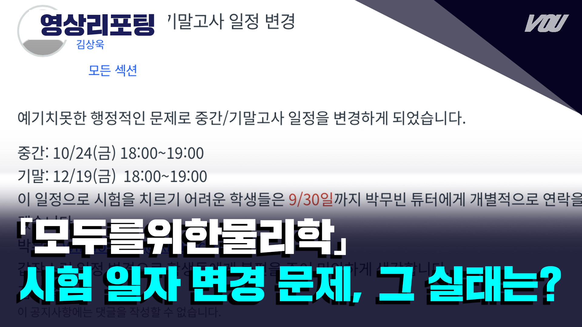 뉴스 [보도] - 「모두를위한물리학」 시험 일자 변경, 그 실태는? | 경희대 방송국 V.O.U.최현서, 이민형 기자 2025-09-28 hit 1037 -